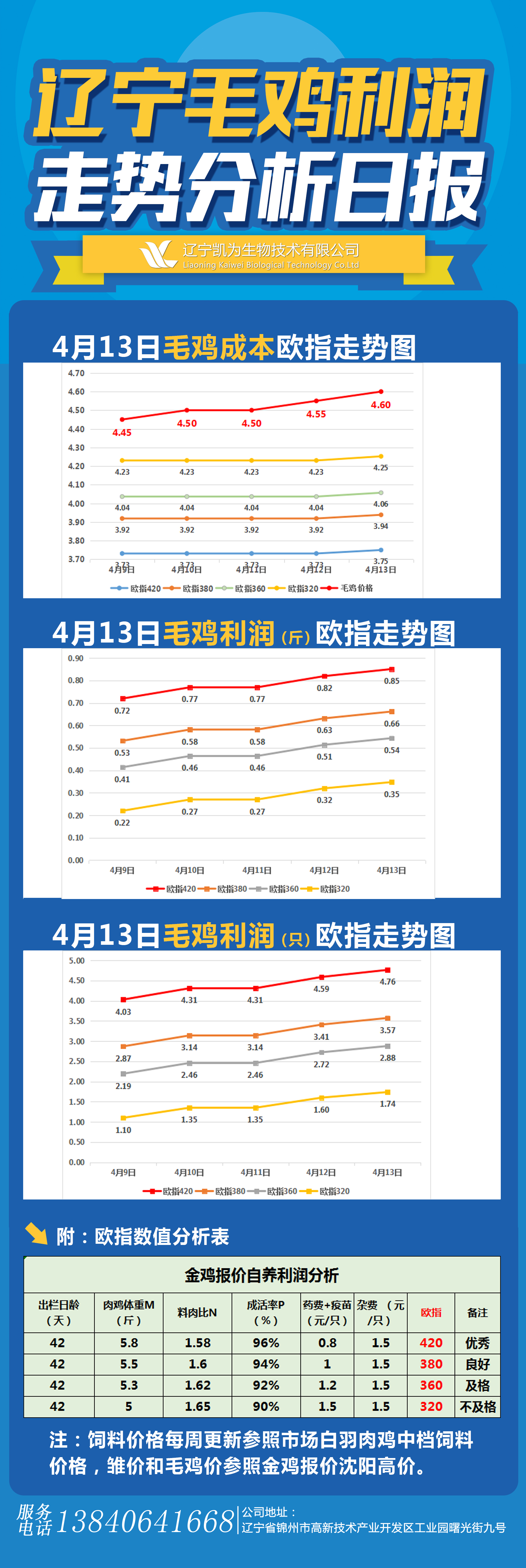 4月13日遼寧地區(qū)毛雞利潤走勢分析圖