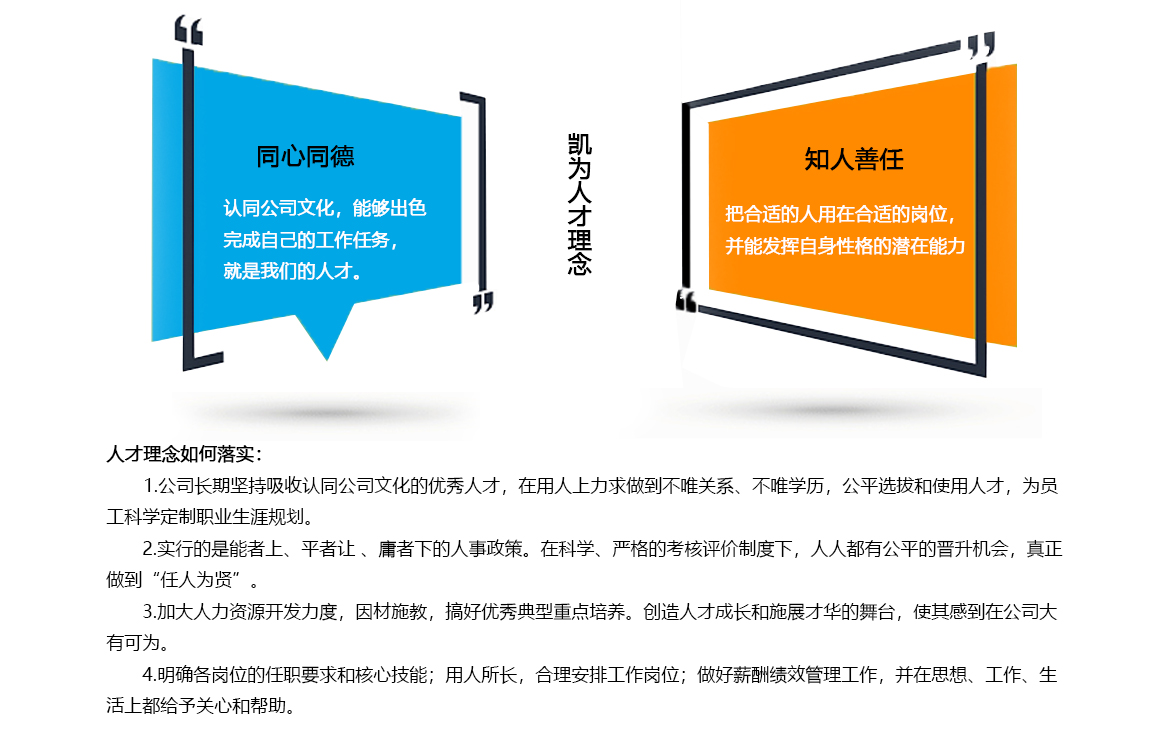 同心同德:認(rèn)同公司文化,能夠出色完成自己的工作任務(wù),就是我們的人才。